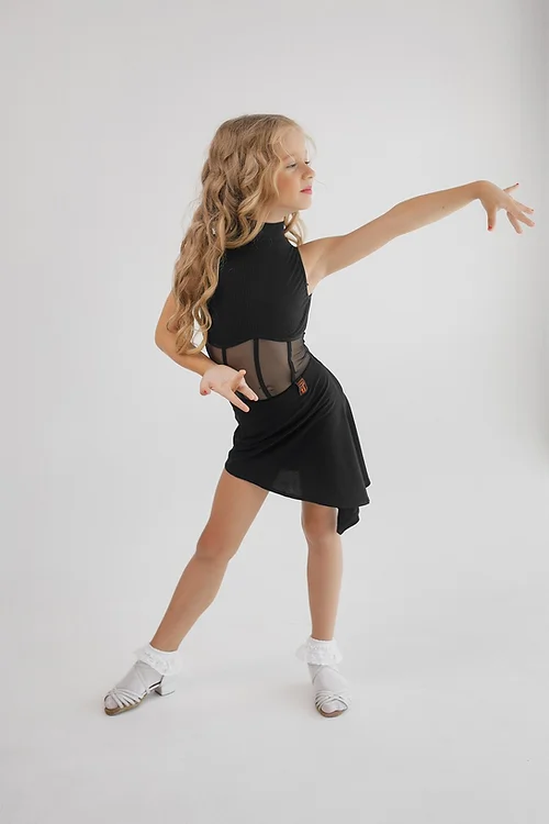 Spódnica do tańca wykonana jest z wysokiej jakości jerseyu i ma prosty krój, idealna do tańców latynoamerykańskich. Spódnica ma elastyczny pas, dzięki czemu można ją wygodnie dopasować bez konieczności zapinania zamków błyskawicznych. Świetnie komponuje się z body, tworząc kompletną stylizację na występy na parkiecie. Spódnica ma wszyte spodenki.