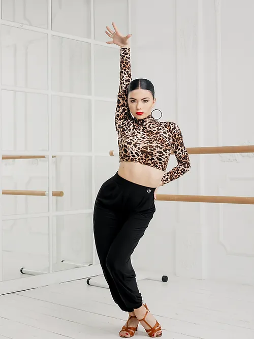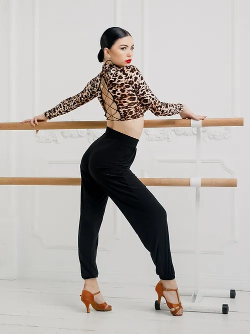 Te spodnie do tańca są wygodne podczas treningu i występów. Jest idealny do różnych stylów tańca i można go łatwo dopasować do innych strojów tanecznych.